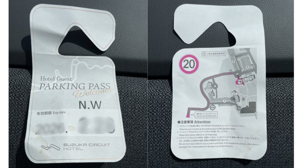 ホテル利用の場合は、車のルームミラーにつける紙を渡されます。