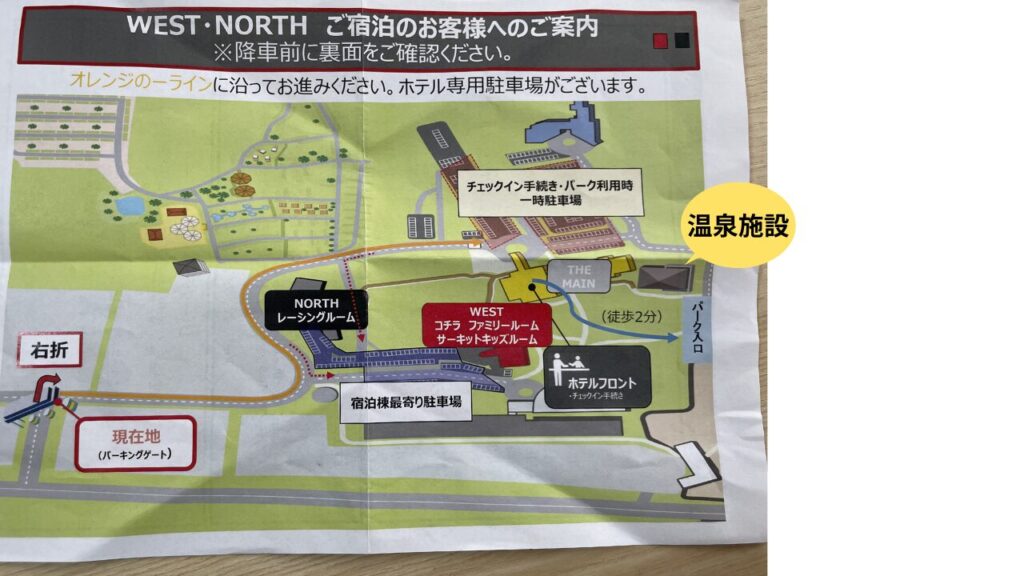 その後、ホテル専用駐車場へ案内されるので、看板に従って進めばOKです。